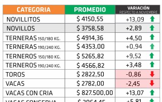 La Federación de Asociaciones Rurales de Entre Ríos (FARER) publicó su relevamiento mensual de precios de hacienda en pie correspondiente a noviembre, elaborado a partir de los valores registrados en los remates realizados por las [...]
