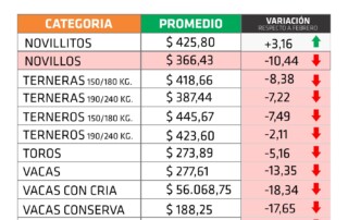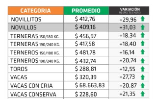La Federación de Asociaciones Rurales de Entre Ríos (FARER) publicó su relevamiento mensual de precios de hacienda en pie correspondiente a noviembre, elaborado a partir de los valores registrados en los remates realizados por las [...]