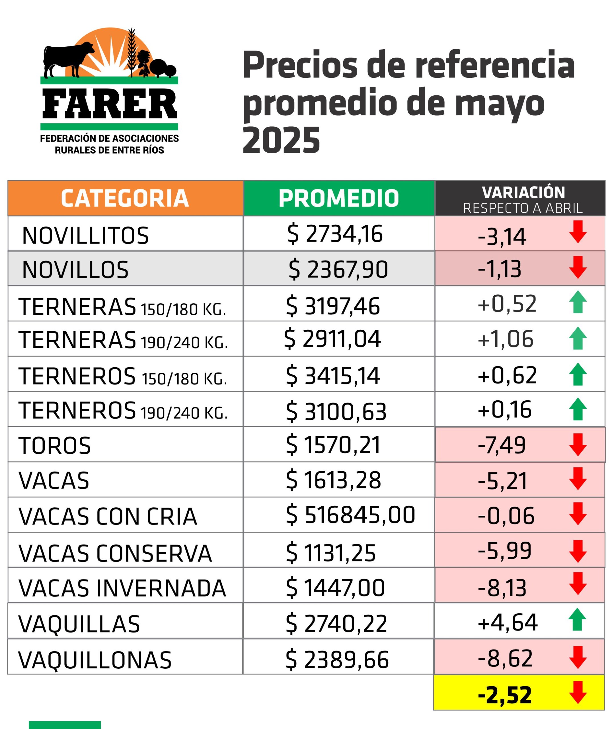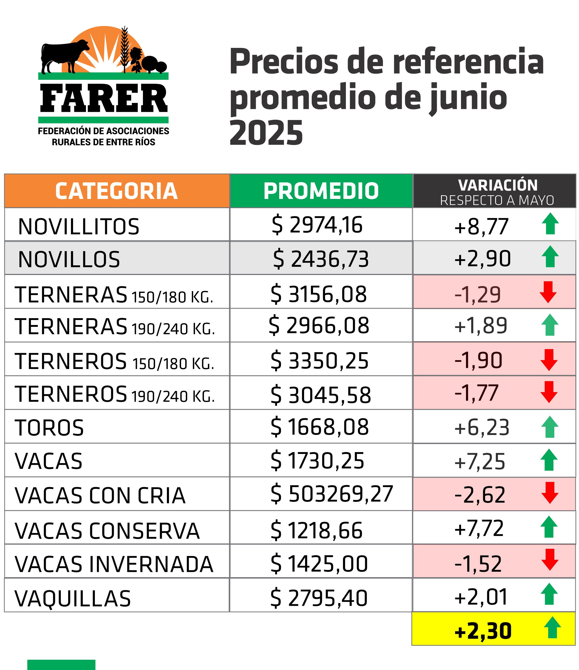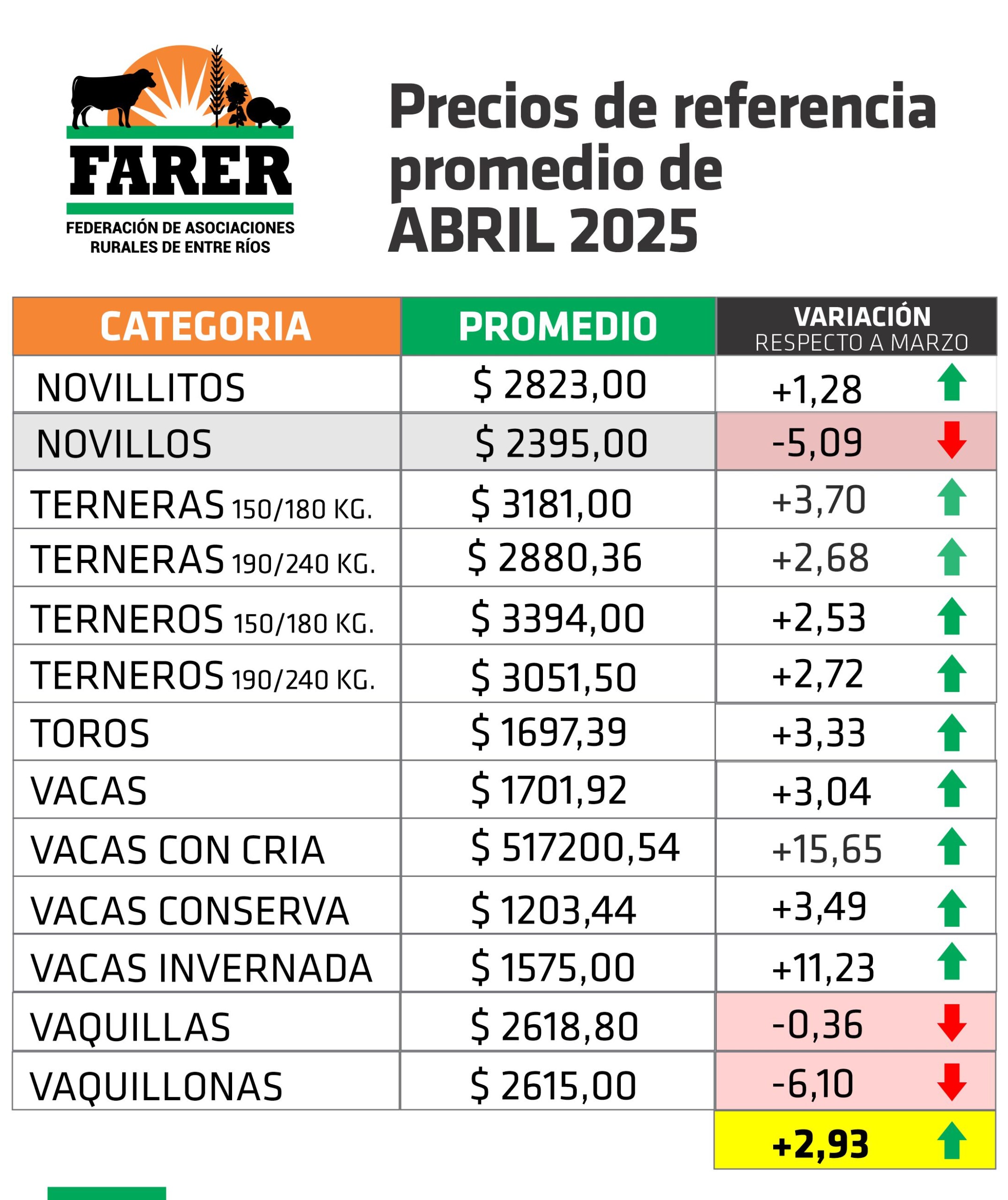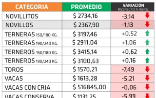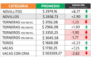 La Federación de Asociaciones Rurales de Entre Ríos (FARER) elaboró su relevamiento mensual de precios de hacienda en pie, en base a los valores obtenidos en los remates realizados por las distintas rurales de la [...]