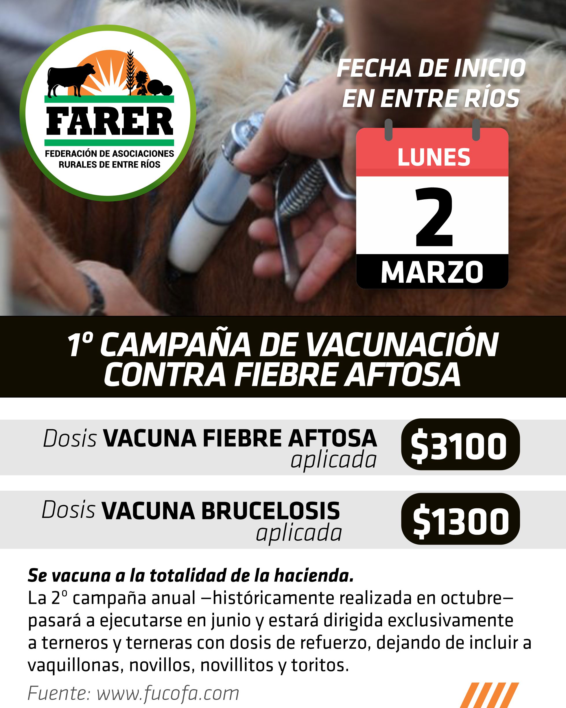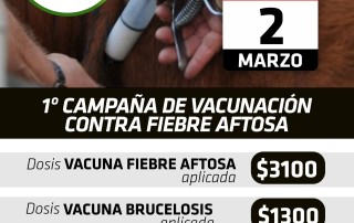La primera campaña de vacunación comenzará el lunes 2 de marzo. El valor de la dosis contra la fiebre aftosa será de $3.100 aplicada, mientras que la vacuna contra la brucelosis tendrá un costo de [...]