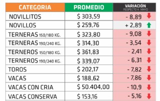 Por segundo mes consecutivo, la hacienda en pie tuvo un fuerte retroceso. Con caída en los precios promedios en casi todas las categorías, junio se ubicó 5,29 % por debajo de mayo, con el agravante [...]