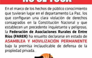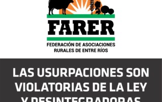 La Federación de Asociaciones Rurales de Entre Ríos (FARER) desea expresar la profunda intranquilidad que genera en los productores los intentos de usurpación que se han venido materializando en diversos puntos de nuestro país, con [...]