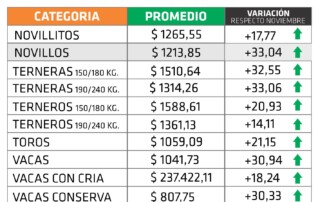 Noviembre acompañó a la inflación y volvió a mostrar una pizarra por encima del 18%. Las vacas con cría, terneros y novillitos fueron las categorías que más crecieron. La Federación de Asociaciones Rurales de Entre [...]
